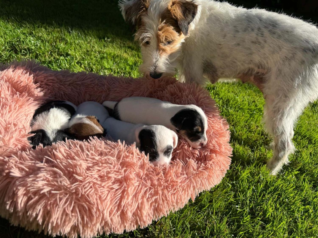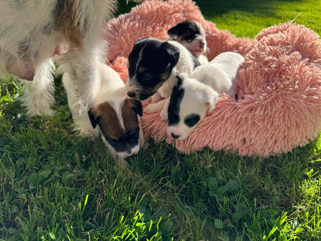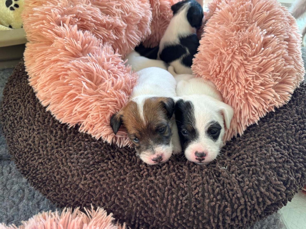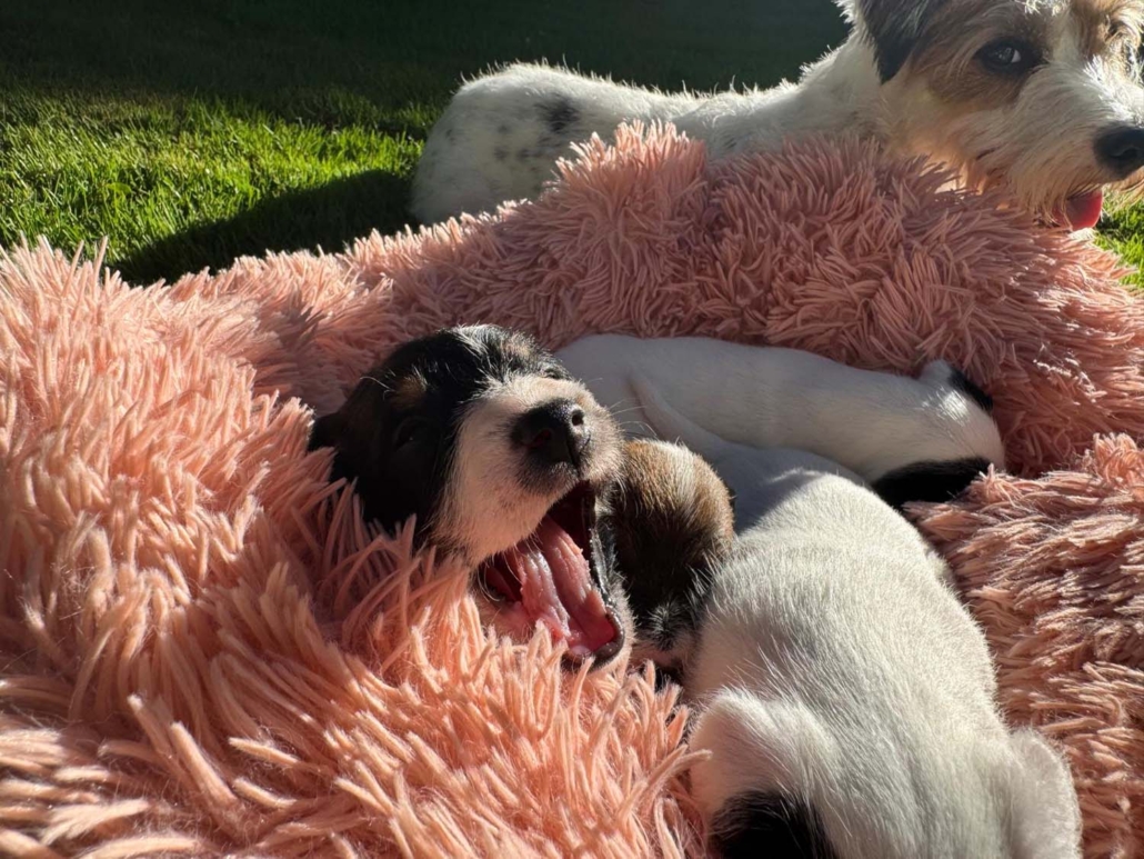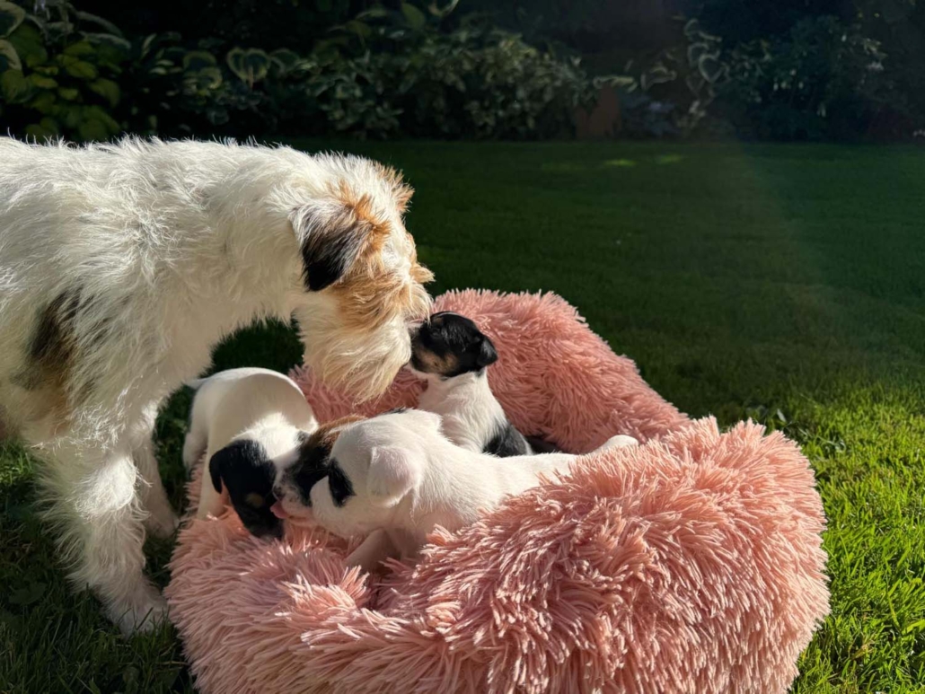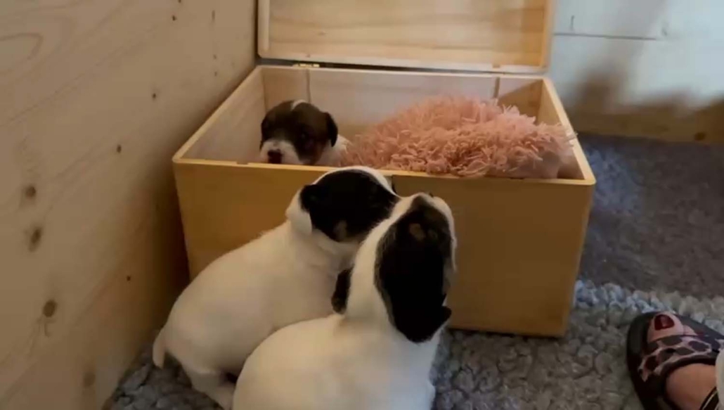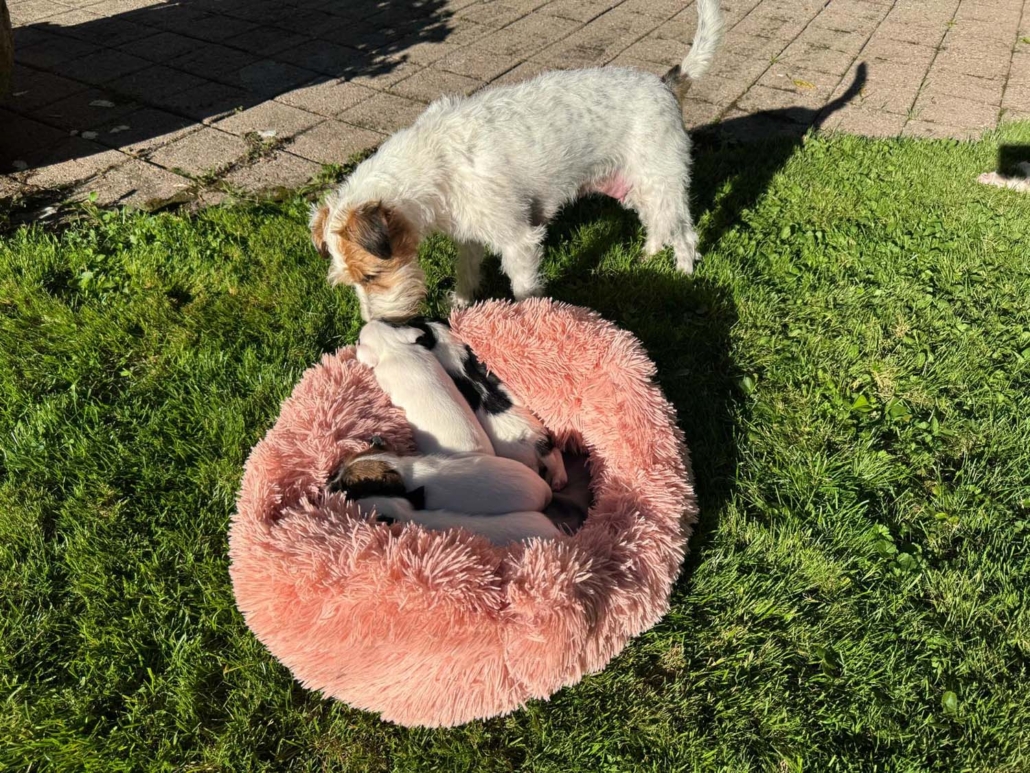Damit sie genügend Platz zum Entdecken, Spielen und Kuscheln haben, sind sie mit Mama Gucci nun in eine grössere Welpenkiste umgezogen – quasi in ihre erste richtige „Wohnung“.