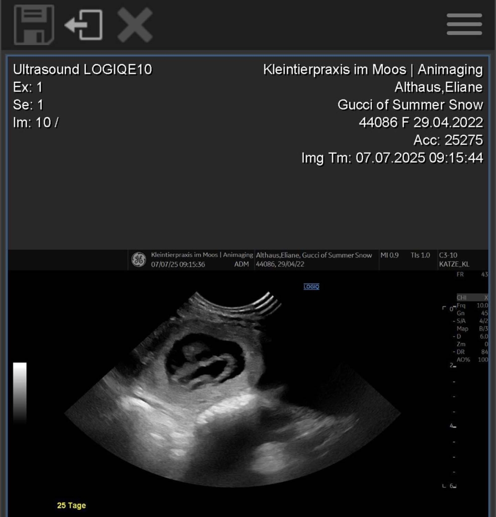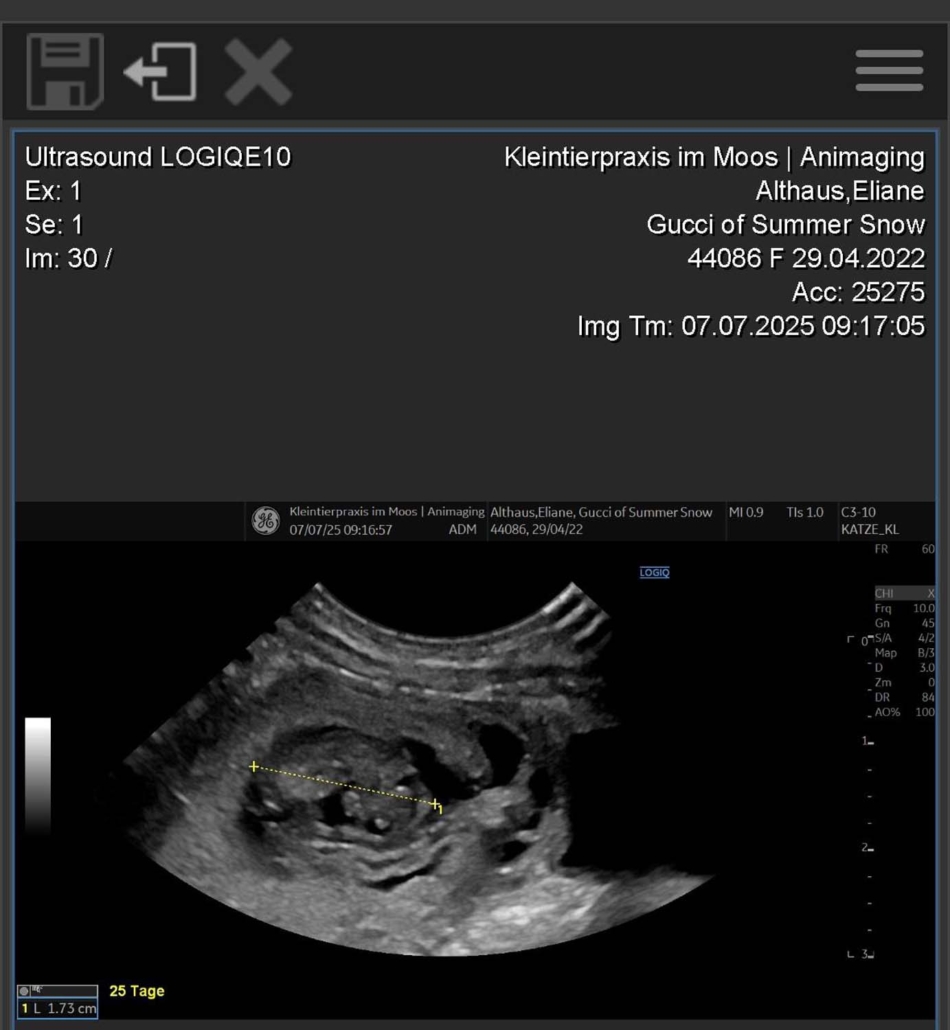 Gucci ist trächtig – und wir freuen uns riesig auf Mitte August! Auf dem Röntgenbild sind vier kleine Parson Russell Terrier-Welpen zu erkennen! 🐶🐶🐶🐶